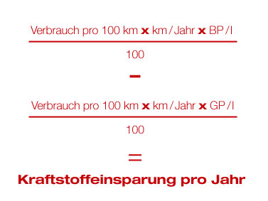 Durch folgende Formel kann der Spareffekt berechnet werden: km/Jahr = Jahreslaufleistung im Jahr